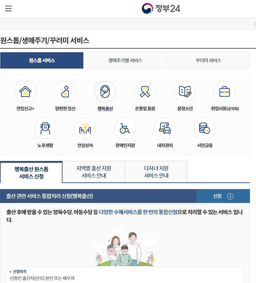 둘째, 출산 관련 지원 서비스를 함께 신청할 수 있는 행복 출산 원스톱 서비스를 이용할 것!