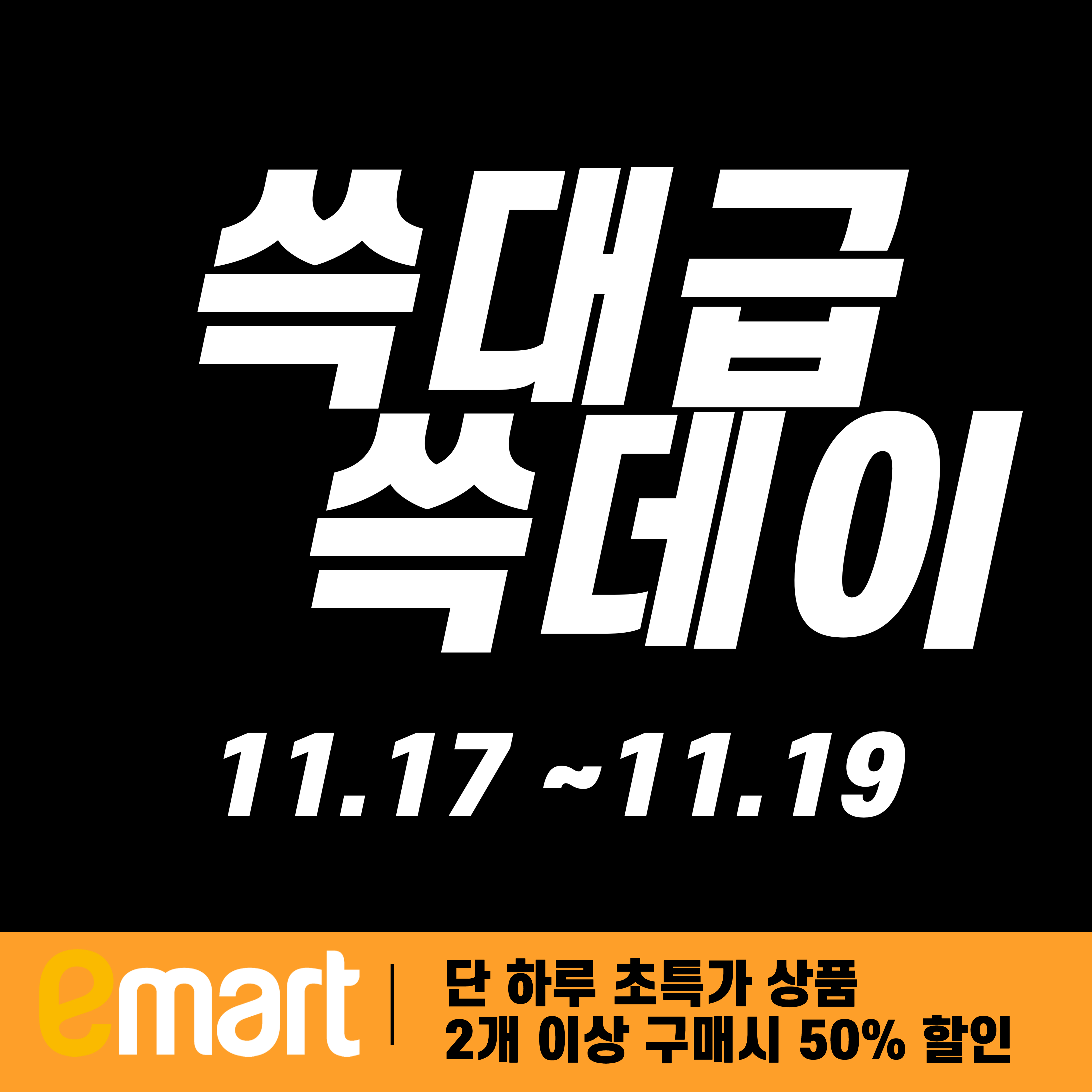 1년에 단 한 번만 진행하는 “쓱데이” !! 올해는 역대급 그 이상 쓱대급으로 진행한다고 하니 기대가 되는데요, 무엇보다 먼저 11월 17일부터 19일까지 단 3일간만 열리는 만큼 어떤 품목들이 할인하는지 그리고 꼭 사야 하는 추천품목 알려드립니다.