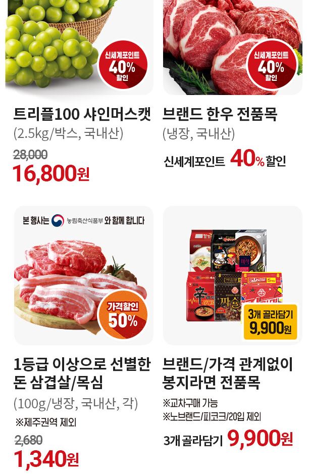 - 한우 전 품목 40% 할인 (신세계포인트 적립 시)