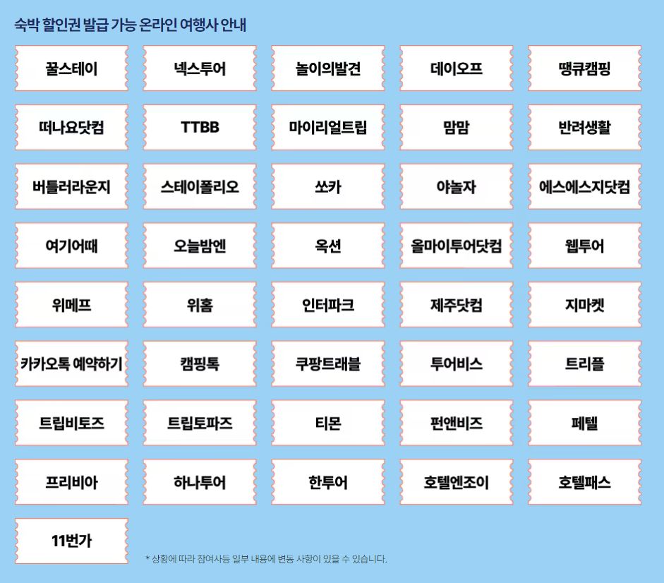 - 사용방법 : 참여 온라인 여행사를 통합 숙박 할인권 발급 및 사용