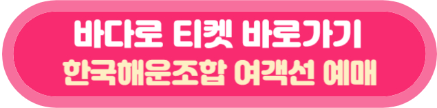 가장 먼저 <2024 바다로> 티켓 구매하는 방법이 궁금 하실텐데요, 바다로 티켓은 한국해운조합 여객선예매 홈페이지에서 구매할 수 있습니다. 한국 해운조합 여객선예매 사이트에 들어가서 인적사항을 입력하고 바다로 티켓을 결제하면 카카오톡을 통해서 바다로 티켓번호가 전송됩니다.