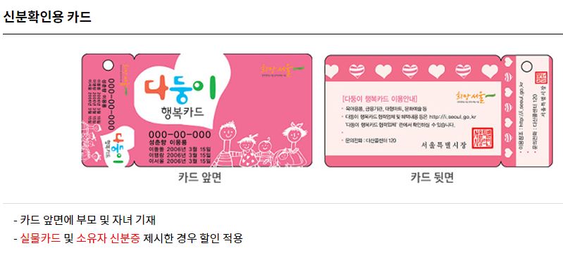 - 서울특별시 다둥이행복카드 외 타 지역 다둥이행복카드는 할인이 적용되지 않습니다.
