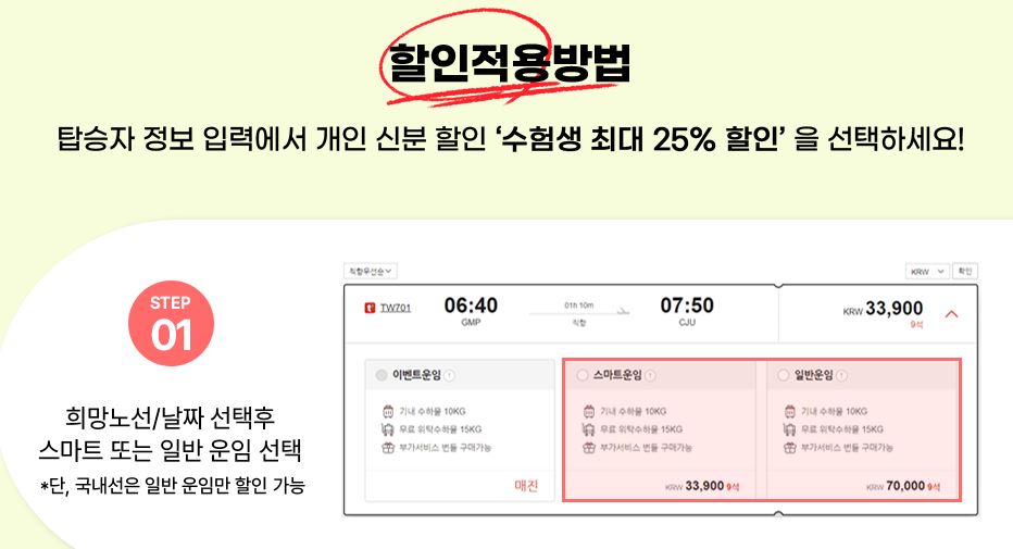 "티웨이 항공" - 수험표 챙기고 할인누리자!