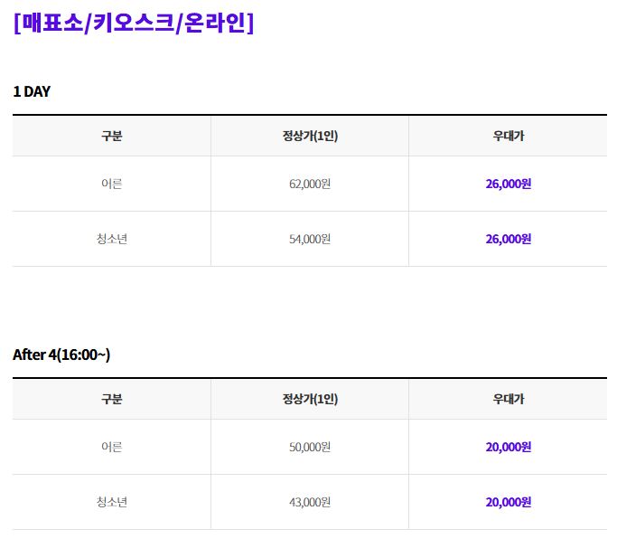 일일 자유이용권의 경우 우대가 26,000원, 오후권의 경우 우대가 20,000원으로 이용할 수 있는데요, 2025 수학능력시험 수험표, 접수증, 수시합격증 원본과 함께 사진이 부착된 신분증인 학생증이나 청소년증을 소지하시면 됩니다. 타 우대와 중복 할인을 되지 않으며, 증명자료 원본 제시시에만 우대가 가능하다고 하니 꼭 지참하셔서 혜택 받으시기 바랍니다.
