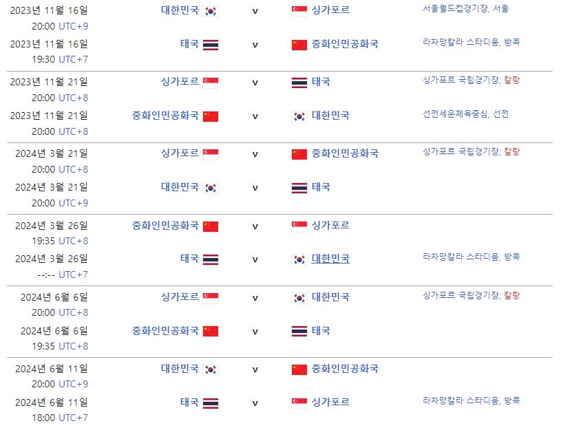 가장 가까운 경기 일자는 오는 11월 16일 경기와 11월 21일 경기입니다. 그중에서도 우리 대표팀의 첫 경기인 11월 16일 경기는 싱가포르와 오후 8시 서울 월드컵 경기장에서 열린다고 합니다. 아직 티켓이 오픈 되지는 않았지만 11월 첫 주쯤에는 아마도 티켓 예약이 가능할 것으로 생각됩니다.