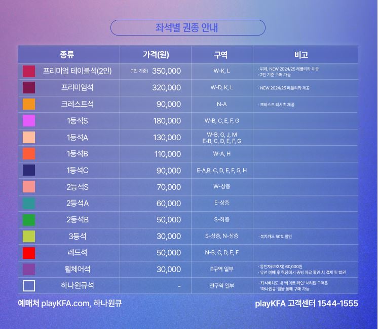 저조한 예매율의 원인인 축협에 대한 반감과 함께 또 다른 원인으로 꼽히는 것은 바로 이번 경기부터 기습 인상 된 티켓 가격인 것도 같습니다. 일반적인 골대 뒤 응원석인 레드석의 경우 기존 3만 5천원에서 5만원으로 가격을 인상했는데요, 붉은 악마 측과 협의했다는 축협의 입장과 달리 붉은 악마 측은 사전 협의가 아닌 일방적인 통보였다고 하네요. 여러모로 유쾌하지만은 않은 소식들인 것 같습니다.