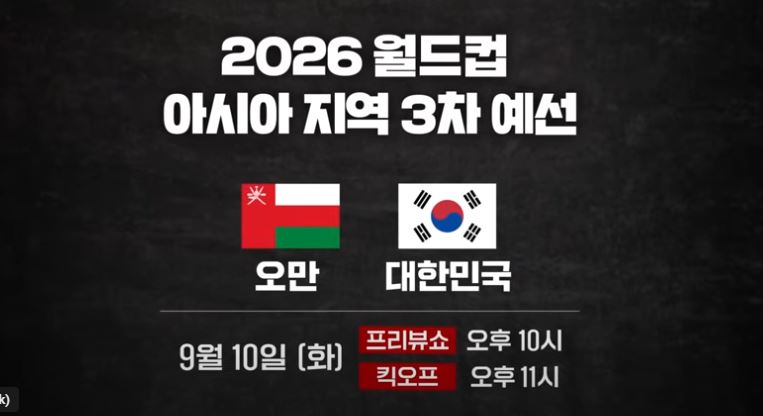 1. 축구 국가 대표팀 VS 오만 경기 일정