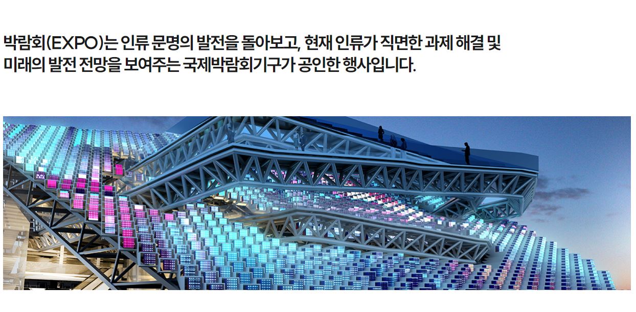 우리나라는 이 전문박람회 개최 이력이 있는데요, 1993년 대전 EXPO와 2012년 여수에서 개최된 EXPO가 바로 그 전문 박람회입니다. 이번 2030년 유치는 실패했지만, 2035년에 한 번 더 도전한다고 하니, 모든 분들이 힘을 모아서 꼭 2035년 유치에는 성공했으면 하는 바람입니다.