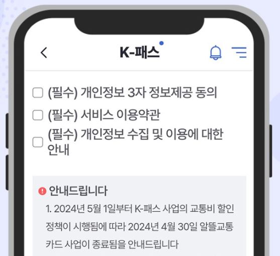 5) 5월 1일(수) K-패스 앱으로 업데이트 진행합니다.