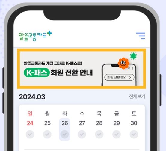 먼저 가장 핵심적인 사실은 알뜰 교통카드 이용자라면, 별도의 K-패스 카드 발급 없이 그대로 이용이 가능하다는 것입니다. 다만 기존의 알뜰 교통카드를 K-패스 카드로 전환하려면 알뜰 교통카드 앱을 통해서 회원 전환 등록을 해야 합니다.