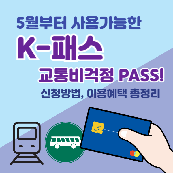 국토교통부는 교통비 부담을 줄이기 위해 K-패스를 5월 1일 출시할 예정이라고 합니다. K-패스 교통카드를 사용하면 내가 쓴 교통비를 최대 53%까지 환급받을 수 있는데요, 벌써 홍보가 많이 되고 있는 만큼 오늘은 K-패스 신청방법과 혜택을 미리 알아볼테니 기간 내 신청해서 꼭 혜택받아보세요.